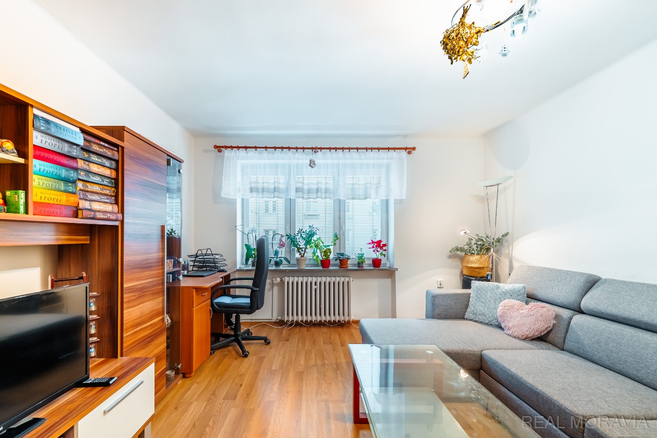 Nabízíme k pronájmu pěkný prostorný byt 2+1 v menším bytovém domě v Olomouci, ul. Za poštou, blízko nákupního centra Šantovka. Byt se nachází v 1.patře čtyřpodlažního domu bez výtahu, má výměru 55,1 m² a je po rekonstrukci v r. 2016 (vnitřní dveře, kuchyň, koupelna, podlahy, částečně elektroinstalace, částečně omítky). V domě je celkem 12 bytů, dům je po celkové revitalizaci (fasáda, zateplení, střecha, stupačky, okna, vstupní dveře, společné prostory). V bytě se nachází velká předsíň s oknem (věšáková stěna, botník), koupelna (vana se sprchovací zástěnou, umyvadlo, otopný žebřík), samostatné WC s oknem, prostorný obývací pokoj (sedačka, skříňky, stolek), kuchyň s jídelním koutem (vestavěné skříně, plyn. sporák s el. troubou, digestoř, lednice s mražákem, stůl a 4 židle), spíž (s pračkou), ložnice (vestavěná skříň, manželská postel, prac.stůl + židle). Na podlaze podlahové PVC (chodba, kuchyň), plovoucí podlaha (pokoje) a dlažba (koupelna a WC). Okna plastová, žaluzie, osvětlení ve všech pokojích. Vytápění a ohřev vody – samostatný plynový kotel, samostatné měřiče energií. K bytu patří společný balkon na chodbě a velký sklep 16 m². Přípojka na internet, pevná linka. Ve vnitrobloku za domem k dispozici dvůr se zahradou. Byt se pronajímá se částečně zařízený. Parkování na ulici před domem, nebo na parkovišti vedle domu. Orientace pokojů na jih (do ulice Za Poštou), kuchyň na sever (do vnitro bloku). V blízkosti MHD, obchodní centrum Šantovka. Volný od 1.5.2026. Měsíční nájemné 15 000 Kč + zálohy na energie a služby 3500 Kč. Majitel požaduje vratnou kauci ve výši 1 měs. nájmu vč. energií, provize RK ve výši 1měsíčního nájmu. Majitel preferuje zájemce bez domácích mazlíčků, nekuřáky, bez zatížení exekucí či insolvencí. Dlouhodobý pronájem. Kompletní informace o stavu nemovitosti obdržíte u makléře, veškeré uvedené údaje jsou pouze informativní. V případě více zájemců si majitel vybere, s kým uzavře rezervační smlouvu. PENB D.